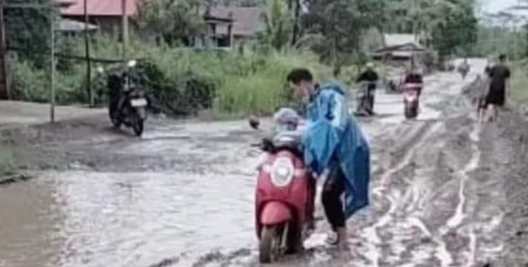 Kondisi jalan disebut semakin parah saat musim hujan. Ruas yang baru dibangun berubah menjadi lumpur, membuat kendaraan roda dua sering tergelincir dan mobil kesulitan melintas.