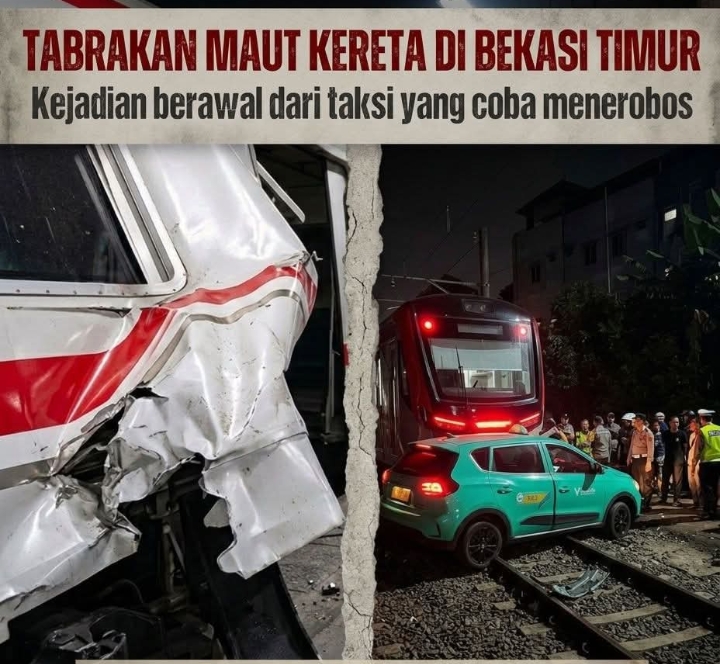 Insiden tabrakan Kereta Api (KA) Jarak Jauh Argo Bromo Anggrek terhadap KRL Commuter Line di Stasiun Bekasi Timur terjadi pada malam ini, Senin (27/4/2026), pukul 20:52 WIB.